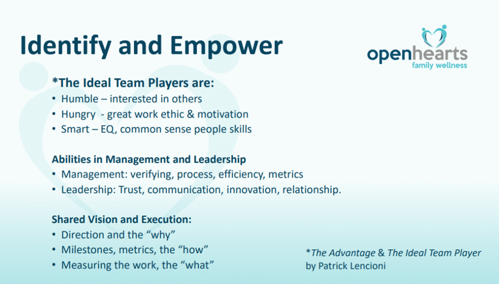 “Not all problems are systemic,” said Dr. Keck. “You need a vision champion who is the embodiment of organizational values.”