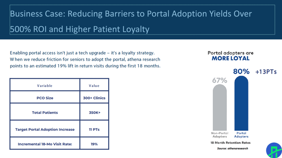 The early results of this expansion of consumer-facing functionality are promising. CenterWell data shows 85% of members who viewed the how to digital videos attempted the tasks and nearly half watched the videos more than once. There was also an 11% increase in portal adoption and a 19% increase in 18‑month visit rates. And in terms of member retention, their initial data shows that member using the portal and digital tools are 13% more likely to stay with a Humana health plan. Their initial estimates of return on investment in these technology enhancements is 500%.