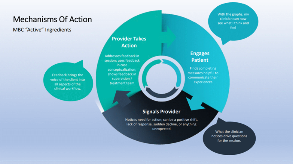 Within the context of MBC systems, Dr. Buttlaire is an advocate of feedback-informed care (FIC) models. He said, “Feedback-informed care is focused on consumer-reported outcomes that are used to build a therapeutic alliance and provide a structured approach for feedback between consumer and clinician. Most simply, all feedback-informed care models are a form of measurement-based care—but not all measurement-based care uses feedback-informed models. What distinguishes feedback-informed care is the intentional use of therapeutic alliance and outcome feedback during sessions to adjust care in real time.”